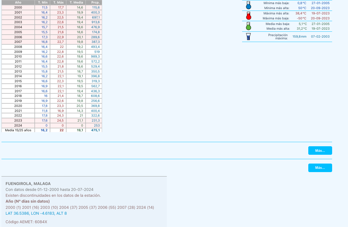 Also these 50ºC and -50ºC are obvisouly not taken into account and even AEMET didn't made average mean max or minimum for September [7] (missing the t_max, t_min and t_mes) while without any error appears with t_max, t_min, etc [8] Something that MPinar has this problem with is that it takes into account all these values, something that AEMET OpenData itself does not take into account. Farell37 (talk) 22:51, 23 August 2024 (UTC)